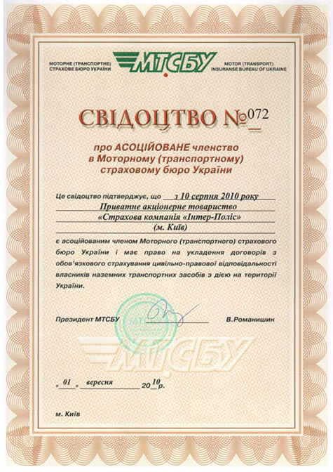 (Свідоцтво МТСБУ №072 про асоційоване членство)